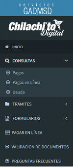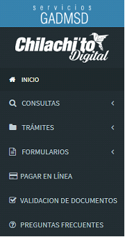 Para revisar los valores adeudados al GAD Municipal Santo Domingo, debe ir al menú principal dar clic sobre el link “CONSULTAS”.