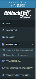 Se desplegará un submenú, debe dar clic sobre el link “Formularios Generados”, para poder visualizar los formularios generados de los últimos 3 meses.