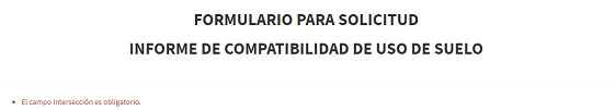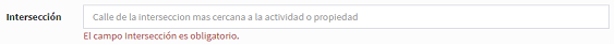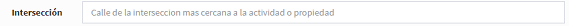 En el campo “Intersección”, debe ingresar la calle de la intersección más cercana a la actividad o propiedad.