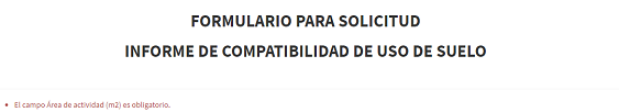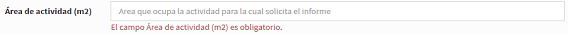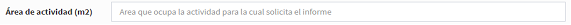 En el campo “Área de actividad (m2)”, debe ingresar el área que ocupa la actividad para la cual solicita el informe.