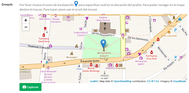 En el campo “Croquis”, debe ubicar en el mapa el ícono de localización en el punto exacto donde está ubicado el predio.