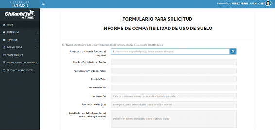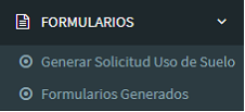 Se desplegará un submenú, debe dar clic sobre el link “Generar Solicitud Uso de Suelo”, para poder ver y llenar los campos de la solicitud.