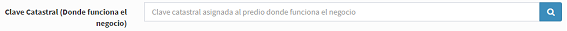 Para generar el formulario debe completar todos los campos. En el campo “Clave Catastral (Donde funciona el negocio)”, debe ingresar la clave catastral asignada al predio donde funciona el negocio y dar clic en el botón “Buscar”.