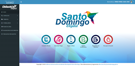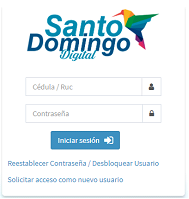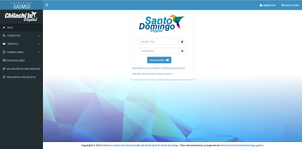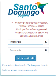 Para acceder a las opciones del Portal de Servicios en Línea del GADMSD, debe dar clic sobre el botón “Iniciar Sesión”, ubicado en la parte superior derecha de la pantalla.