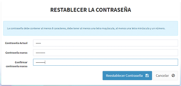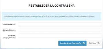 Si ya realizó el proceso de activación y es la primera vez que ingresa a la plataforma, visualizará la ventana para reestablecer la contraseña.