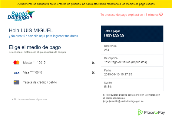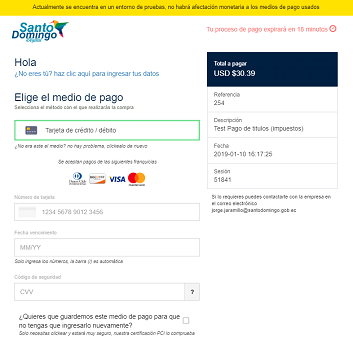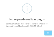Solo se pueden realizar pagos de lunes a viernes (días laborables) de 08:00 a 16:00.