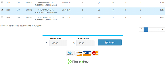 Una vez que haya escogido los ítems a cancelar, debe dar clic en el botón “Pagar”.