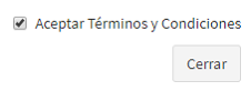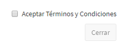 Debe leer el texto, activar la casilla “Aceptar Términos y Condiciones” y dar clic en el botón “Cerrar”.